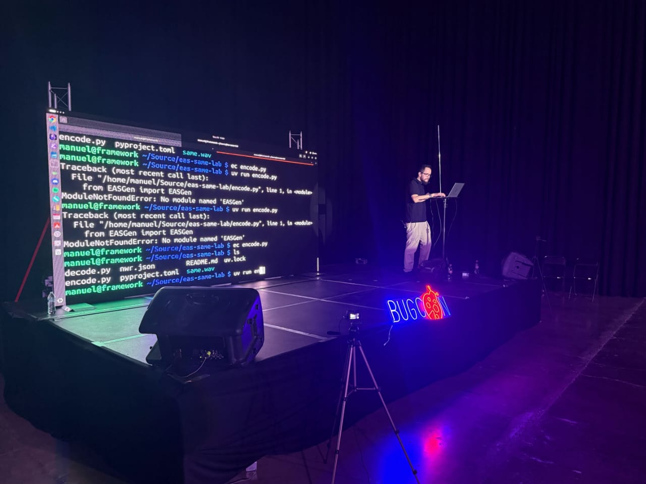 Este BugCON 2025 tuve la oportunidad de dar dos pláticas relacionadas con radiofrecuencia. La primera fue en el track principal: “El pequeño paquete de bits que puede salvar (o desestabilizar) a una ciudad”, donde hablé del sistema EAS-SAME, su adopción en México y sus limitantes. La segunda fue en la Villa RF MX: “Recibiendo selfies satelitales de la Tierra por diversión”, sobre cómo recibir datos e imágenes de los satélites meteorológicos GOES.