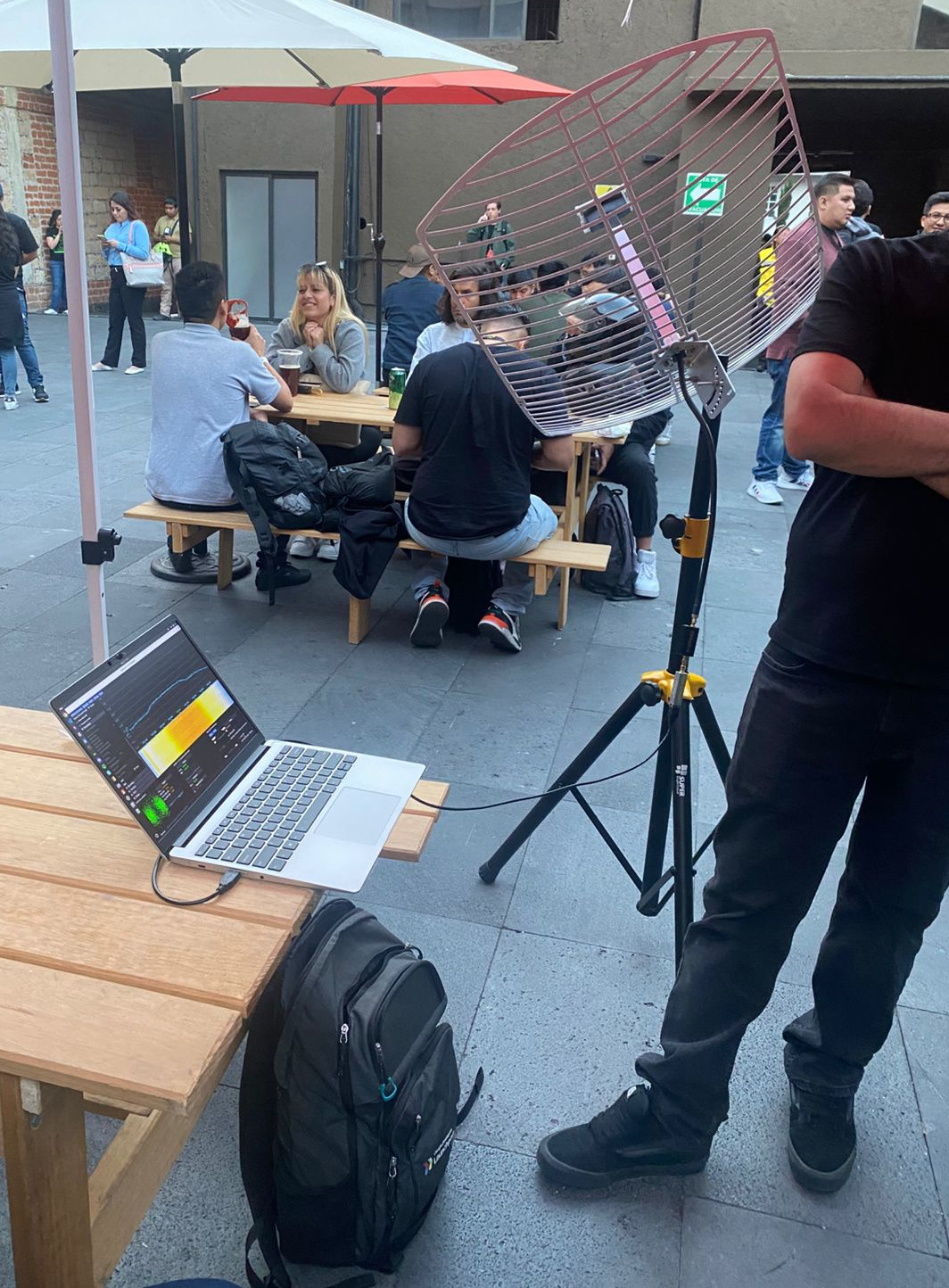 Presentar algo en vivo nunca es trivial. En este caso, la última parte del demo donde simulo la codificación de mensajes no funcionó como lo había desarrollado hace unos meses. Antes de la presentación me enfoqué en practicar el flujo para recibir y decodificar la señal. Supuse que si eso salía bien, lo demás también debería funcionar. No fue así.